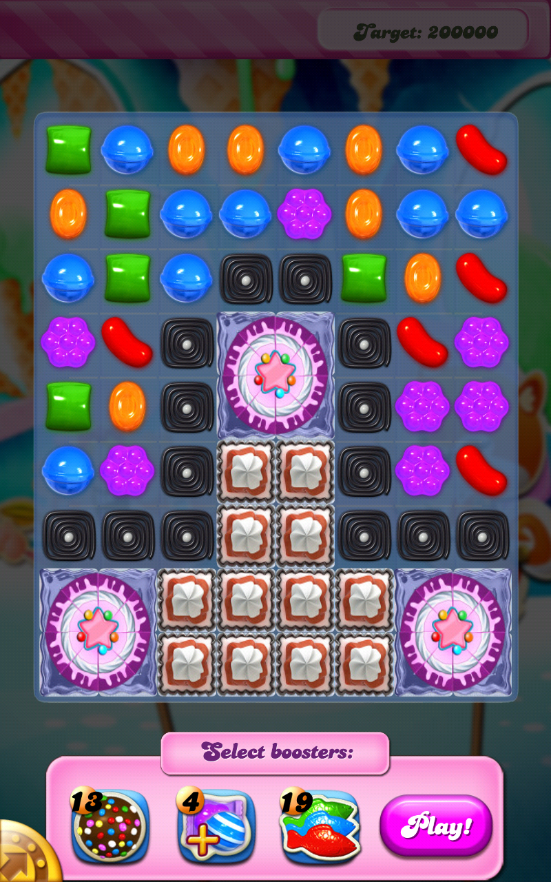 - Since 2015, on HTML5 (mobile), before starting a level, the boosters will not be visible before entering a level. Instead, after entering a level, the "starter boosters" (Colour Bomb, Striped & Wrapped, etc.) will be shown below. Each time you tap a booster, it is added to the board. You can use as many boosters in this fashion, and use more than one of the same boosters (like starting the level with two colour bombs). This starter screen ends once you press the "Play" button or make a valid move. If a booster is not available in this level (like level 236), it will not be displayed. As of now, this only occurs in Cake Climb and its variants.