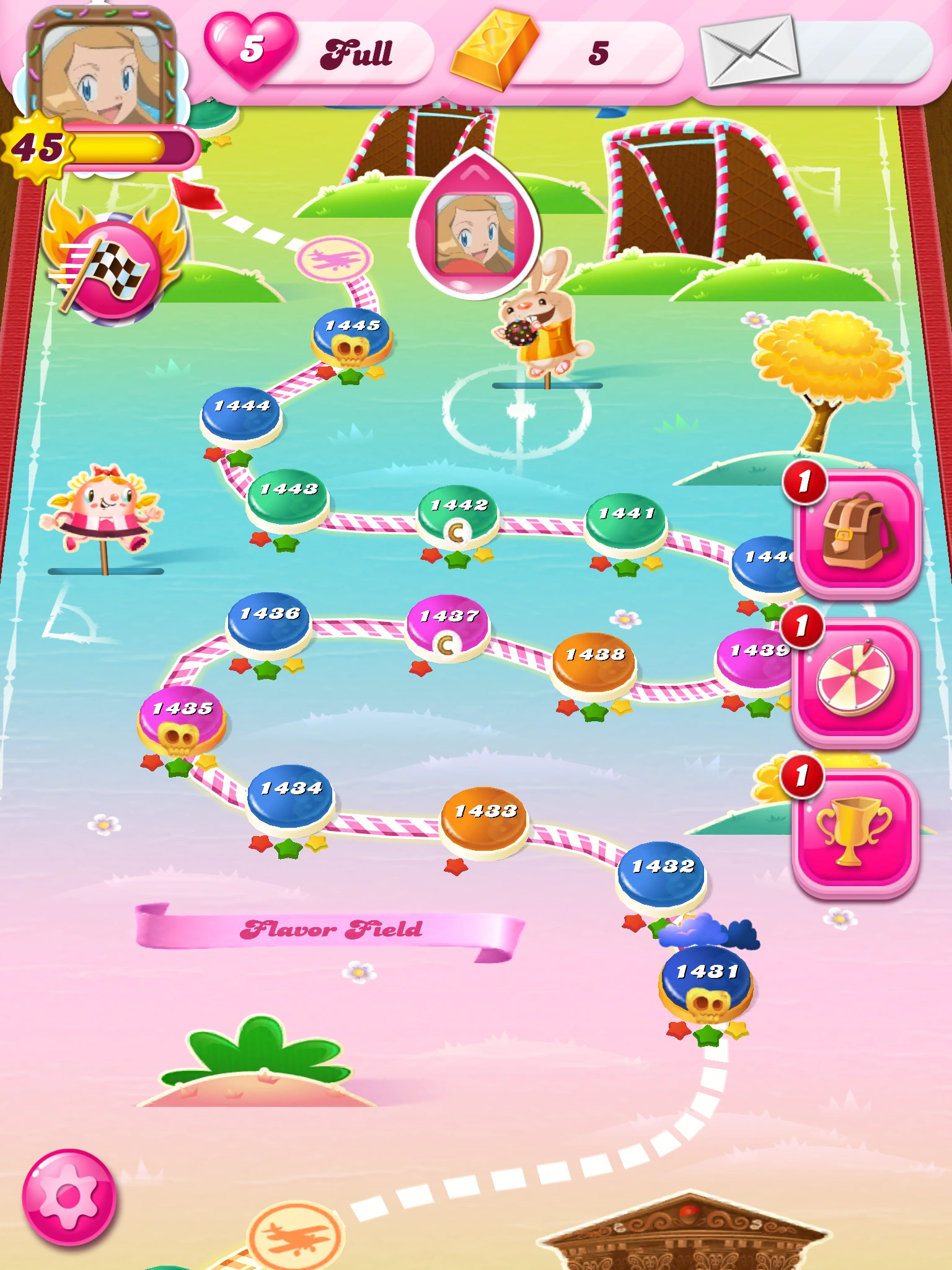 Flavor Field is a hard episode, with a mean of 4.67. It has three very hard levels: 1434, 1437, and 1445, and three extremely hard levels: 1432, 1435, and 1443. Overall, this episode is much harder than the previous episode, Mount Chocolympus.