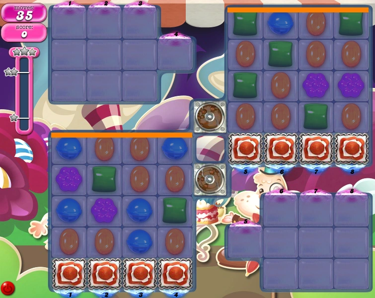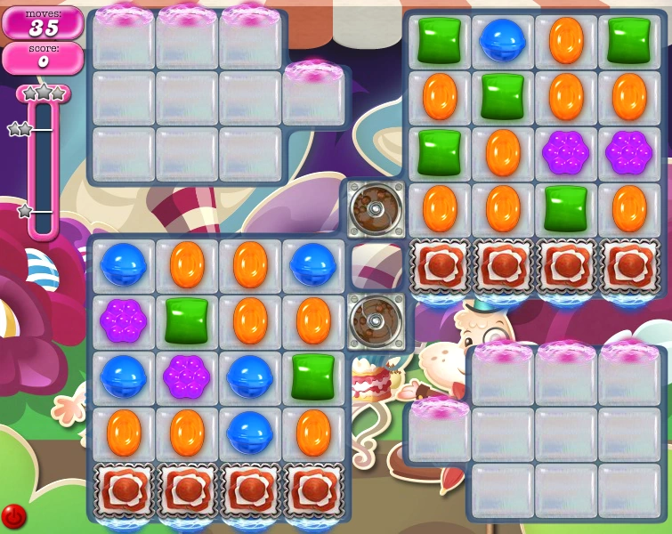 - The areas where the five-layered frosting are the only areas where colour bombs can be created. This can be a problem when clearing the jellies in the isolated squares.