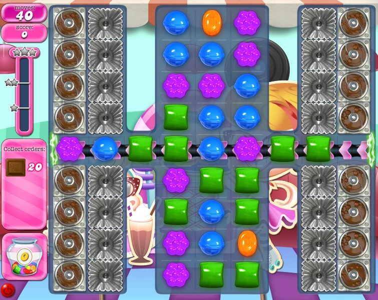 - Clear the single layers of frosting, using special candies, then use the chocolate that comes from the chocolate spawner to complete the level. You may need many combinations to do this, though.