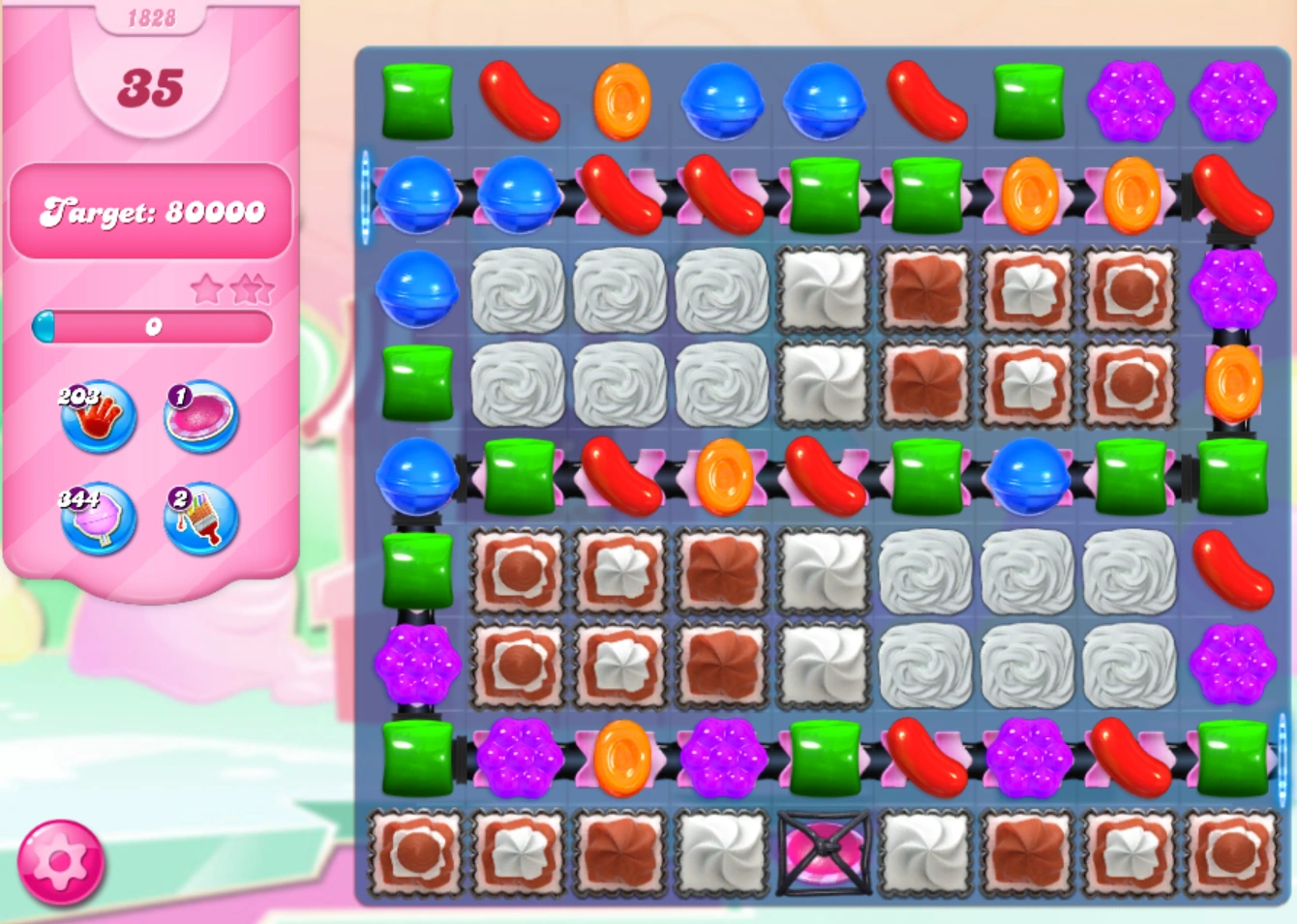 Level 1828 is the eighth level in Icing Islands and the 78th moves level. To pass this level, you must score at least 60,000 points in 35 moves. When you complete the level, Sugar Crush is activated and will score you additional points.