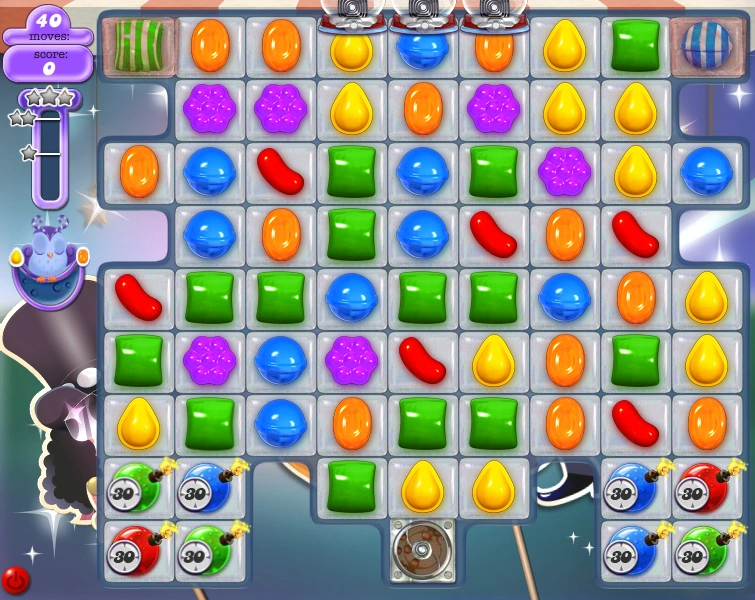 There are candy bombs with 30 moves remaining before they explode, so they explode when there are 10 moves left. However, they are not that much of a threat.