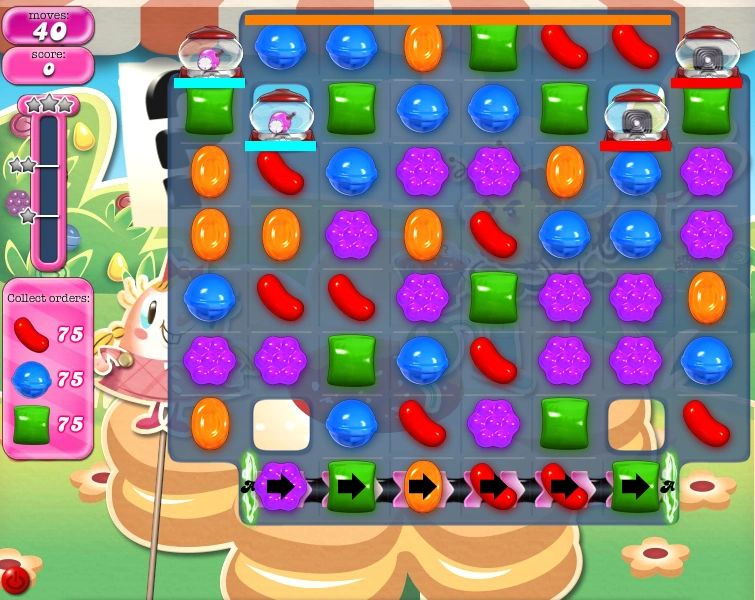 - You only have 40 moves to collect 225 candies, which means you have to collect 5-6 candies per move.