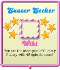 Saucer Seeker is the champion title of the 58th episode, Gummy Galaxy.