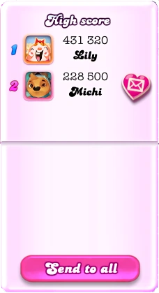 Scoring has been de-emphasized. They are only seen when starting replays, where the player can compare their score with their friends. No levels have a target score as a requirement for completing levels, given that classic level types (Moves levels and Timed levels) are extinct, and that zero-star completions will be immediately bumped to the one-star target score before Sugar Crush contributes to the remaining additional score.