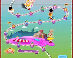 - There are some elements from Candy Crush Soda Saga on background, including gummy bears and soda bottles.