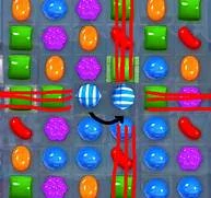 Effects of a striped candy + colour bomb combination. Watch the pattern carefully.