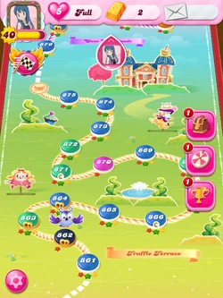 Truffle Terrace is the 59th episode in Candy Crush Saga and the fourth episode of World 11 (HTML5). This episode was released on 4 March 2015. The champion title for this episode is Thirsty Troubadour.